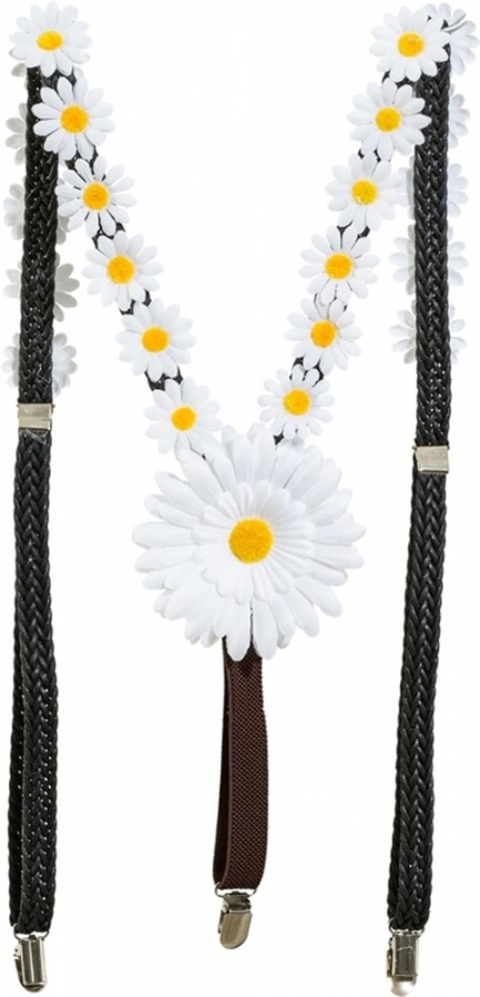 Schwarze Hosenträger / Blumenhosenträger mit weiß-gelben Blumen (Margariten). Hippiezubehör, Sommerparty. Hosenträger sind größenverstellbar. Peace and Love