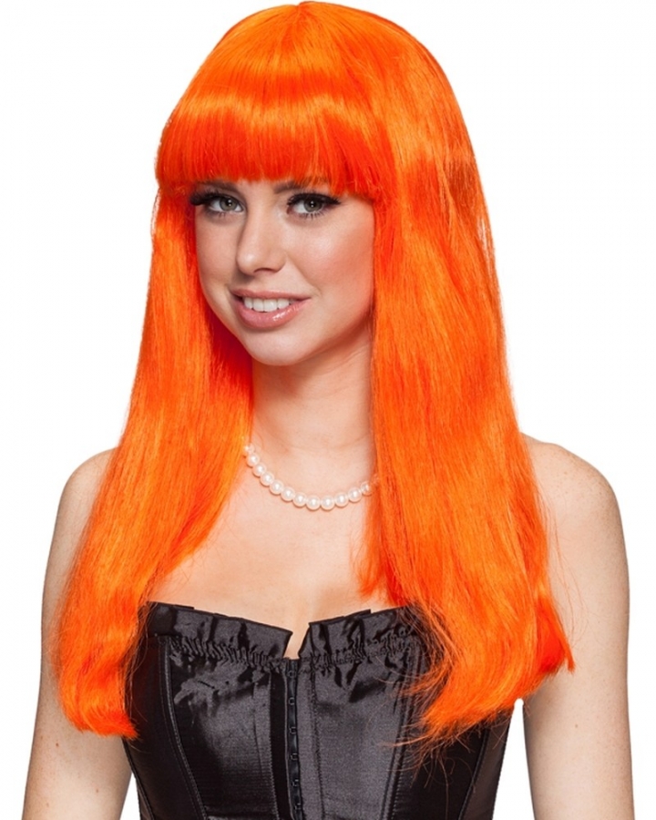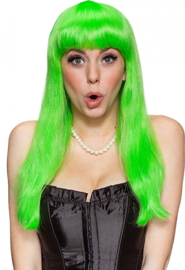 Sexy Langhaarperücke. Wahlweise in 3 Farben lieferbar. Grün, orange, oder pink. Perücke ist größenverstellbar.Material: 100% Polyester