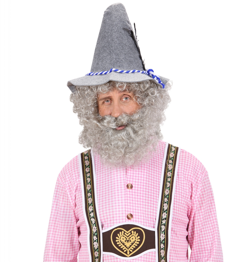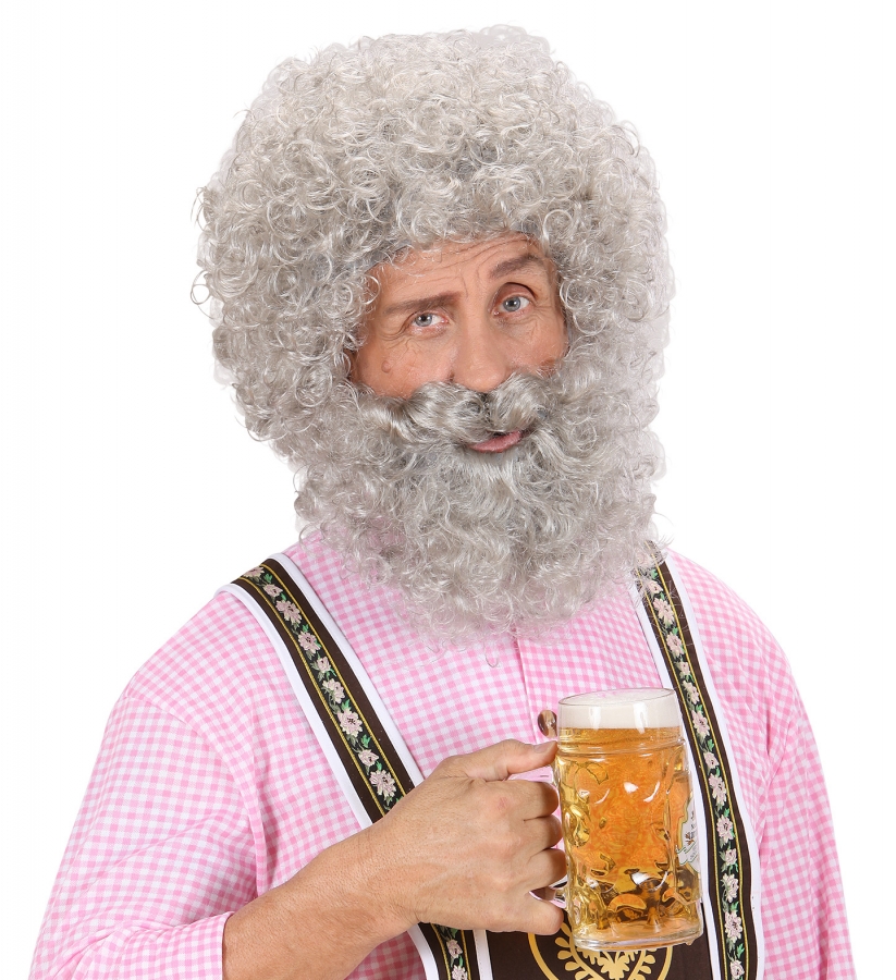 Bayer Bierparty Seppel graue Perücke mit Schnurrbart und Kinnbart