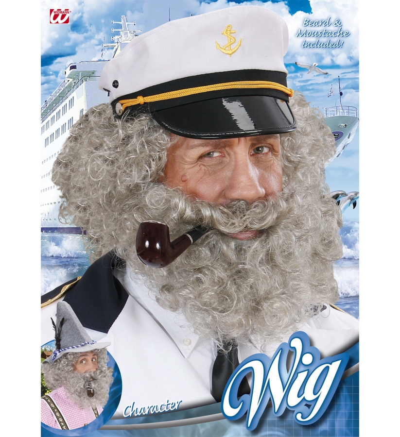 Grauer Bart Graue Perücke im Set Nikolaus Weihnachstsmann Seemann
