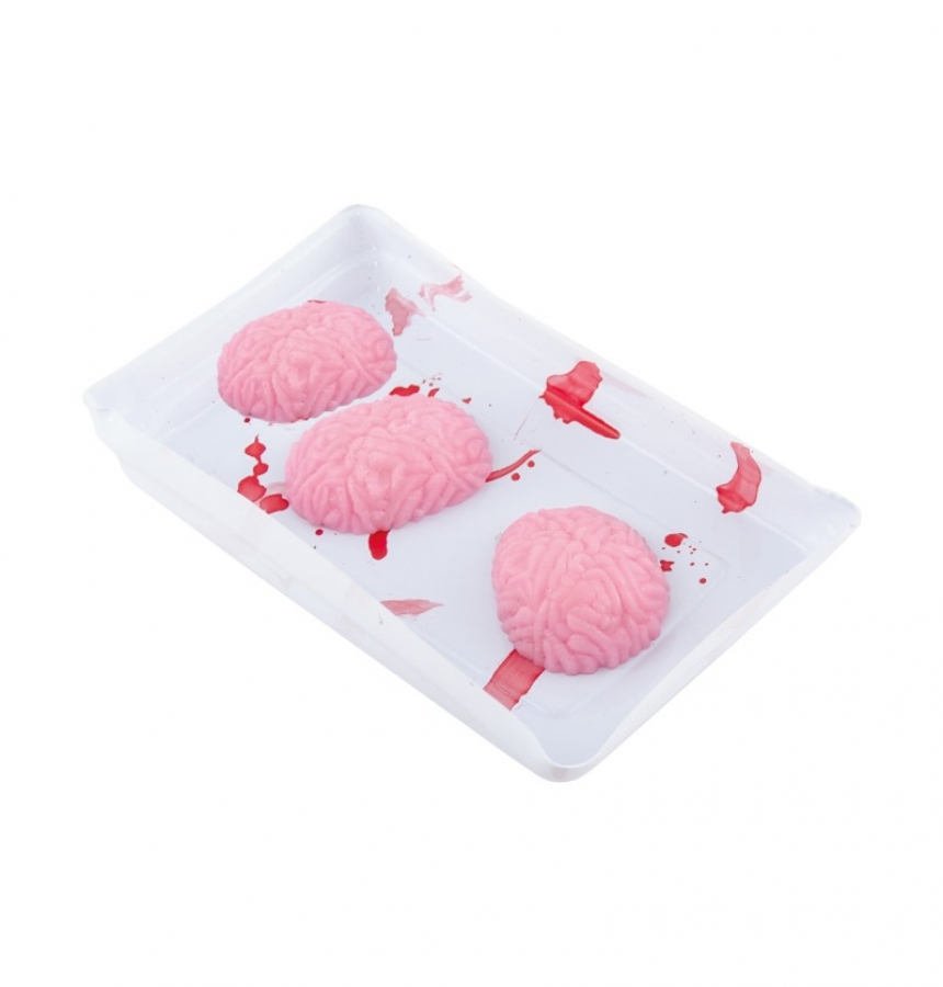 • 1 Plastik Metzger Schale mit Halloween Gummi Gehirnen