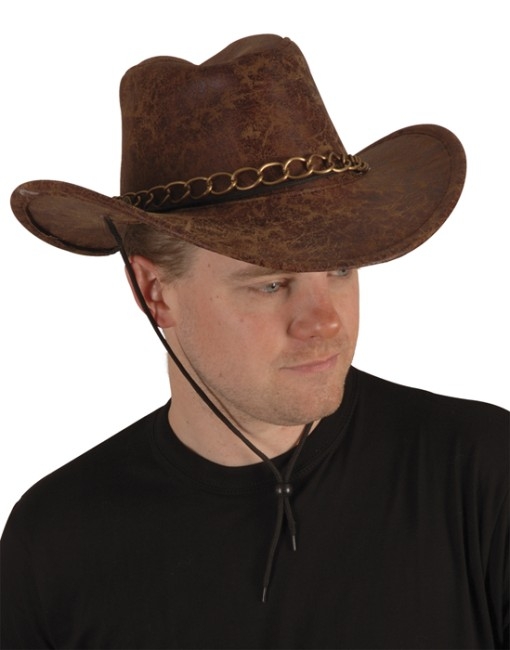 Cowboyhut in Lederoptik (Imitat) mit Kettenband. Farbe braun.