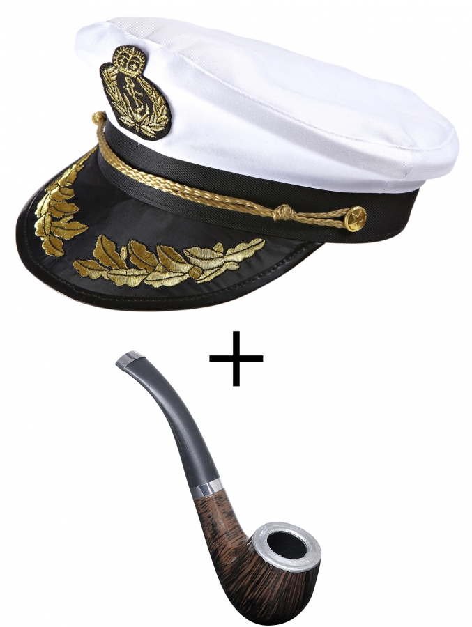 Kapitänsmütze Luxus Seemann Kappe Hut mit Tabak Pfeife Attrappe