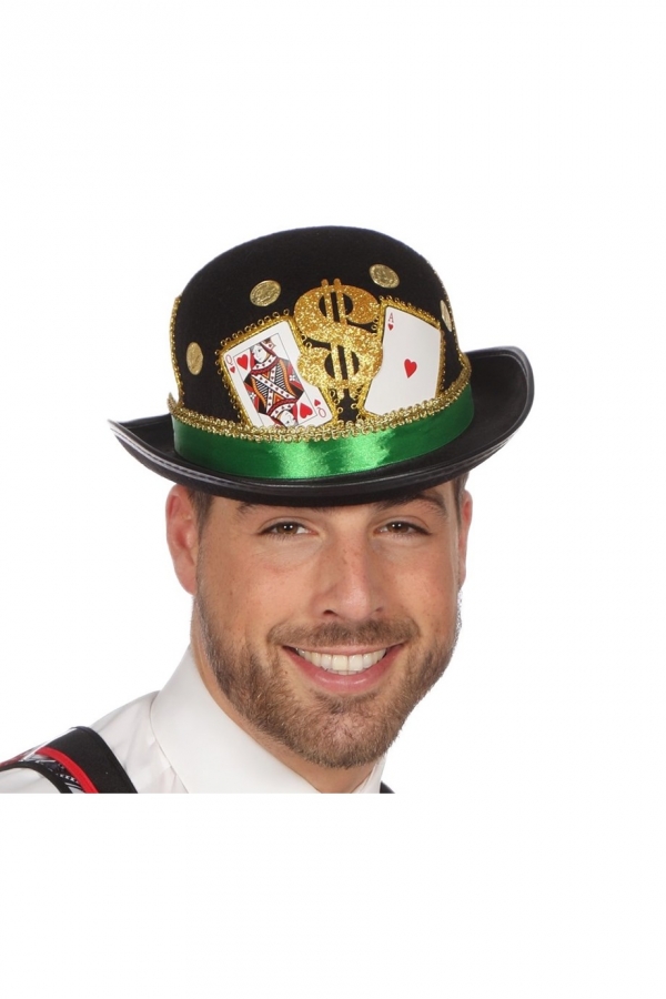 . Bunt ausgestattete Melone mit Spielermotiven wie z.B Dollarzeichen, Spielkarten, Geldmünzen. Melone wird in Einheitsgröße für Erwachsene geliefert.