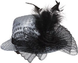 Der Minihut ist mit vielen funkelnden Pailletten besetzt.