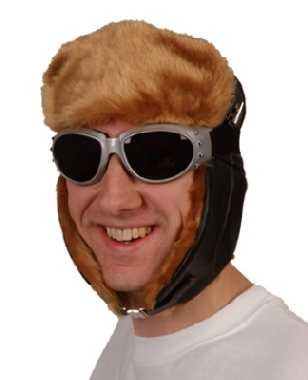 Rennfahrer / Fliegerkappe aus Kunstleder mit Plüschfutter ( ohne Brille )