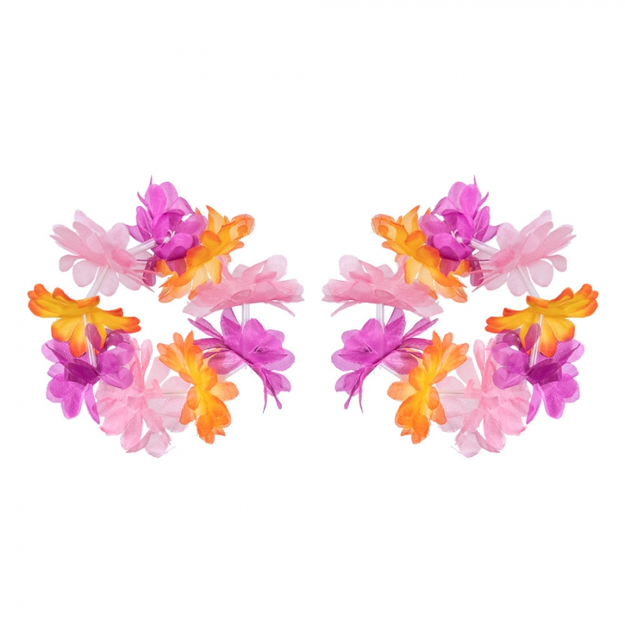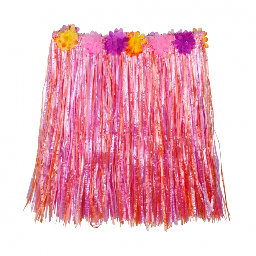 Bastrock, Kopfschmuck, Armbänder und Blütenkette.