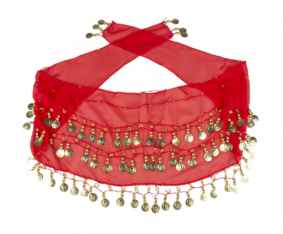 Zigeunerin, Spanierin, Tänzerin, Orientalischer Tanz. Passendes 4 teiliges Set mit goldfarbenen Münzen verarbeitet in der Farbe rot.