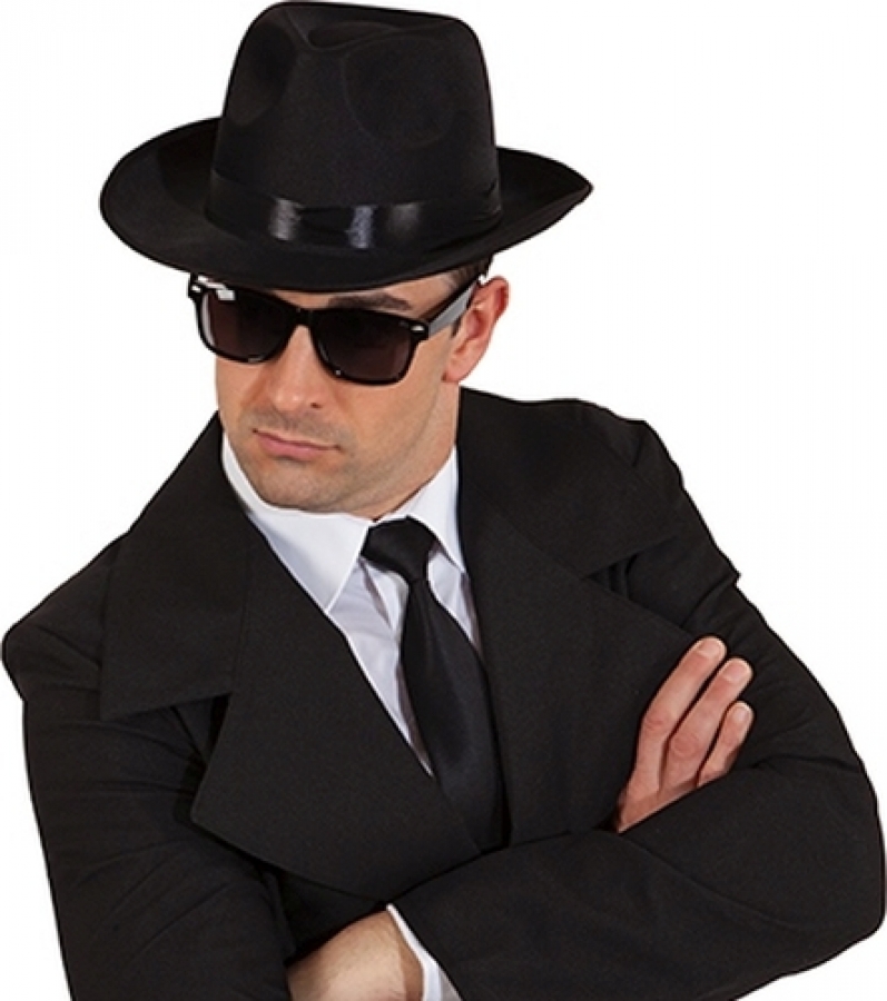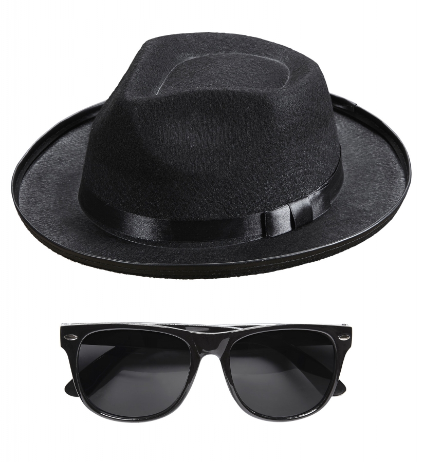 Cooles Out-Fit Ganove, Mafia, Gangster. 3 teilig. Bestehend aus Hut, Brille und Krawatte. Tragbar zu vielen Themen. Toller Gruppenartikel: Malle, Schlagerparty, Junggesellenabschied.
