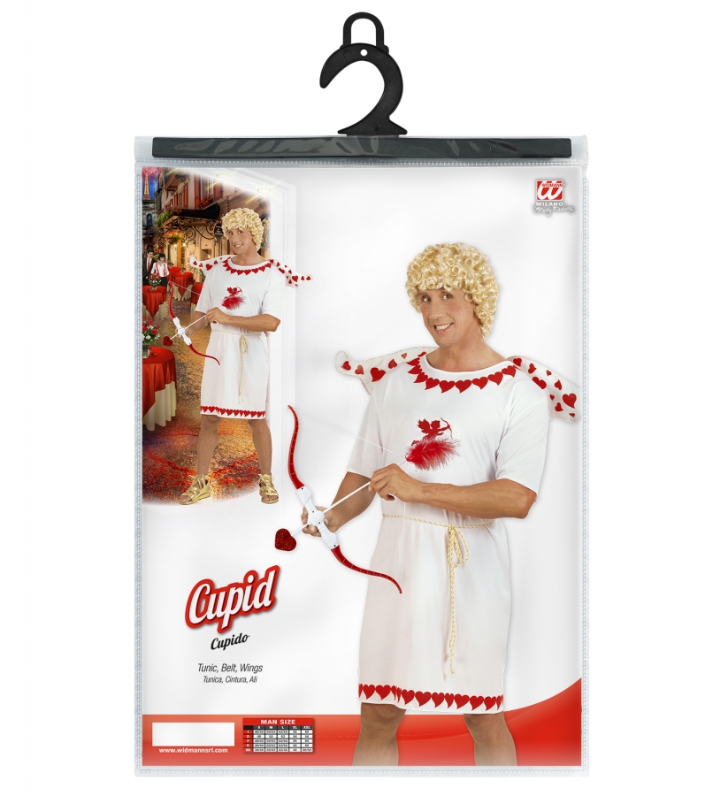 Spaßiges Herrenkostüm in der Form von Amor den Liebesengel. Mal ein ganz anderes Kostüm. Lieferumfang: Kleid mit Flügel und Kordel (ohne weiteres Zubehör). Größenauswahl: S, M, L oder XL.