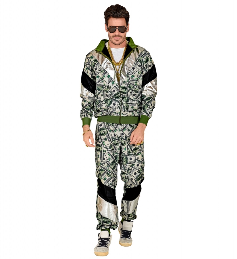 Mach dich bereit für deinen großen Auftritt – mit diesem auffälligen Dollaranzug ziehst du garantiert alle Blicke auf dich. Ob als Dollarkostüm für die nächste Mottoparty, als witziger Trainingsanzug im 80er-Jahre-Stil oder als extravaganter Showanzug im Casino-Look – dieser Jogginganzug ist dein perfektes Outfit, wenn du es mal so richtig krachen lassen willst.
