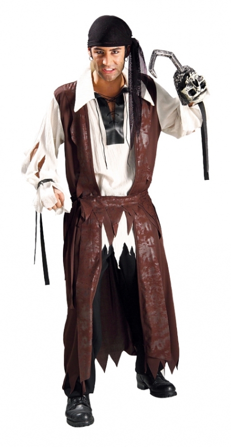 Piratenkostüm Caribic. Bestehend aus ärmellosen Mantel mit befestigtem Hemd, Kopftuch und Tailienschärpe. Einheitsgröße. Passend für die Herrenkombigröße ca. 48 bis 52.