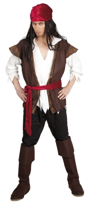 Pirat / Seeräuberkostüm. Bestehend aus Bandana, Shirt mit Weste, Hose und Stulpen. Einheitsgröße 50/52