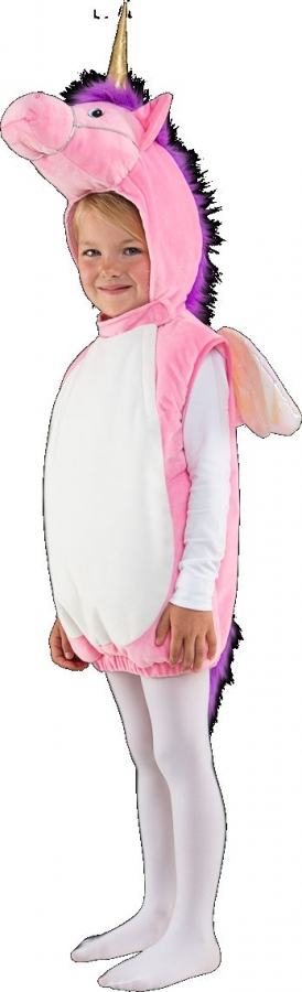 Alle einhornvernarrten Kinder werden dieses pinke Flauschkostüm lieben! Ein pinkes Einhorn mit lilaner Mähne & Schweif, goldenem Horn und weißem Bauch. Die Flügel am Rücken machen das Einhorn noch außergewöhnlicher, denn jetzt kann es auch noch fliegen! Ein tobetaugliches Kleidkindkostüm, welches einfach mit dem Klettverschluss am Hals geschlossen wird. Das Gummibündchen verhindert das Hochrutschen des Kostüms. Ein fantastischer Spaß für Groß und Klein.Material: 100% PolyesterGröße: 104