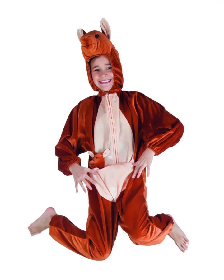 Niedliches Känguruh Plüschkostüm für Kinder. Der Tieroverall ist super für den Kinderfasching oder den Straßenkarneval geeignet. Ihr Kind ist von Kopf bis Fuß gut eingepackt. Der Jumpsuit hat eine integrierte Kapuze mit Ohren und Gesicht. Das Tierkostüm wird für eine Körpergröße von max. 1,40m geliefert. Material: 100% Polyester.