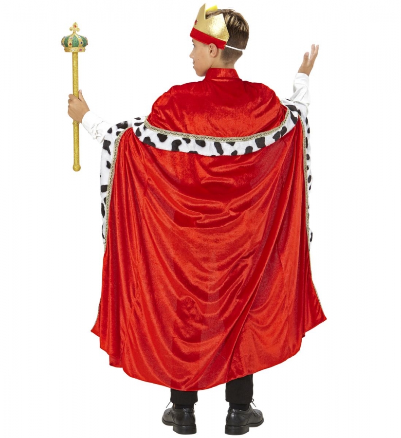 Königsmantel / Königsumhang mit Krone und Zepter / Königszepter für Kinder. Lieferbar in den Größen 128 (5-7 Jahre), 140 (8-10 Jahre) oder 158 (11-13 Jahre). König, Prinz, Kinderkönig, heilige drei Könige, Krippenspiel um nur einige Beispiele zu nennen.