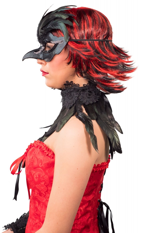Set Maske und Federkragen Rabenmaske Vogelmaske Rabe Krähe Rabenvogel