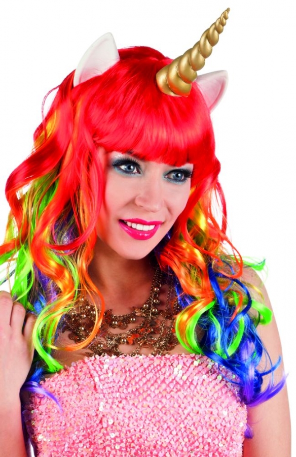 5Bunte Perücke Einhorn mit Horn und Ohren.