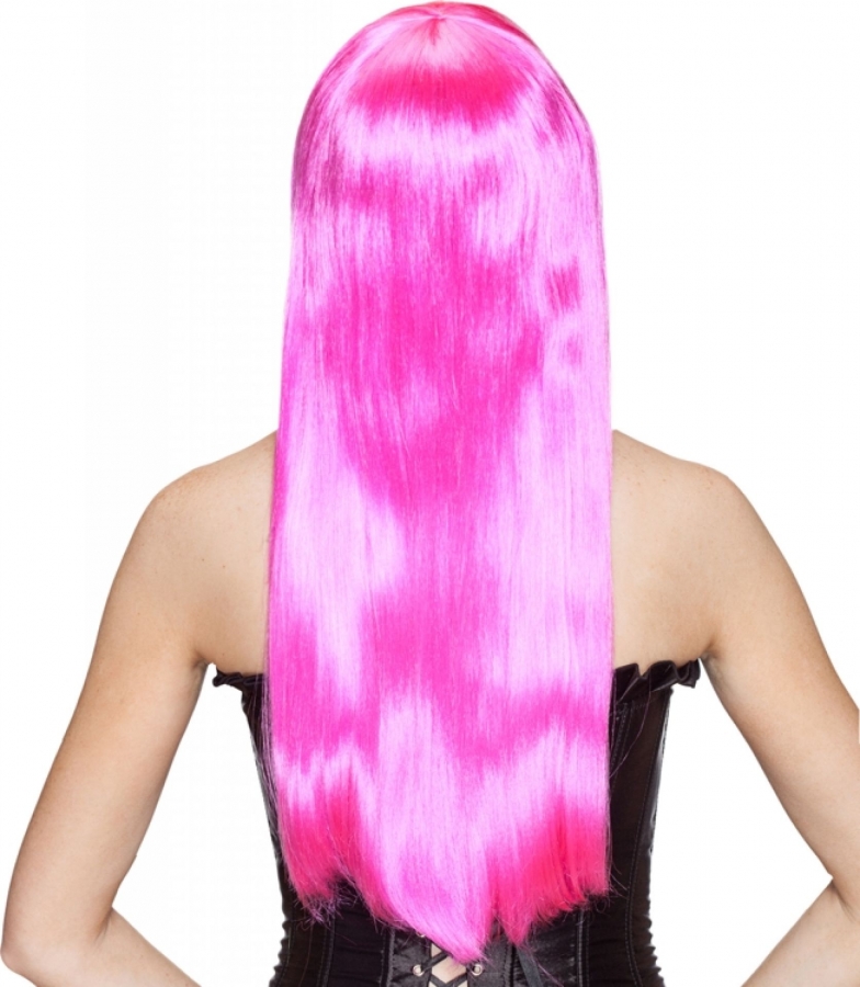 Langhaarperücke mit Pony glatt pink größenverstellbar High Quality