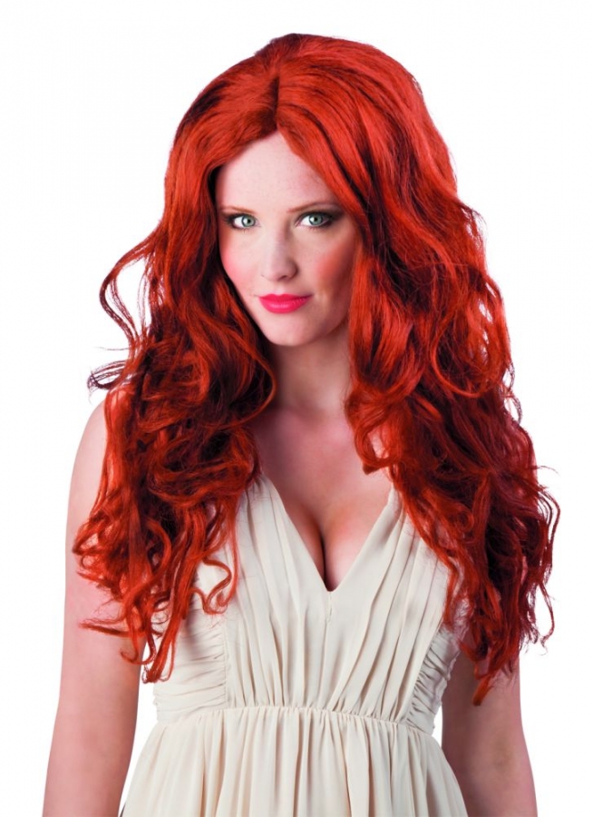Sehr attraktive Langhaarperücke in der Farbe rot.