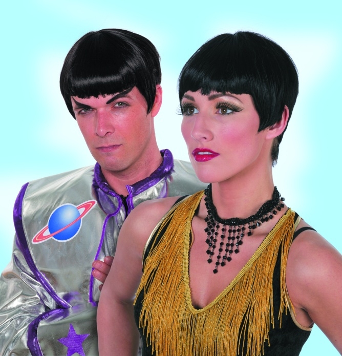 Diese schicke Perücke ist ganz schwarz und hat einen frechen Kurzhaarschnitt.