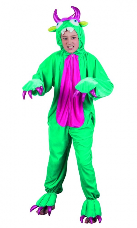 Witziges Monster Plüschtierkostüm. Das Monsterkostüm ist der Hingucker auf der Kinderparty. Auch auf dem nahenden Straßenkarneval ist der Nachwuchs damit bestens verpackt. Das plüschige Monsterkostüm hat eine integrierte Kapuze und Krallen an den Händen und Füßen. Das Kostüm ist für die Körpergröße max. 1,40m geeignet. Material: 100% Polyester.