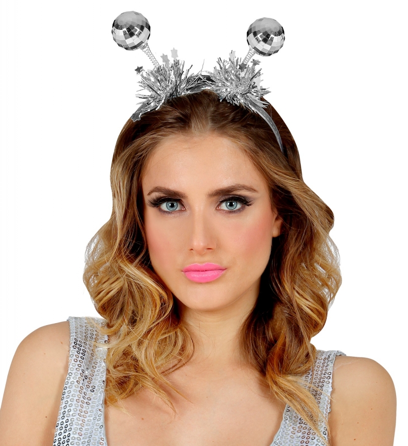 Glitter-Haarreif Galaxia – Alien Kopfbügel mit silberner Discokugel