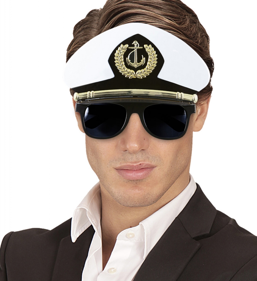 Lustige Partybrille in Form einer Kapitänsmütze mit passender Brille.