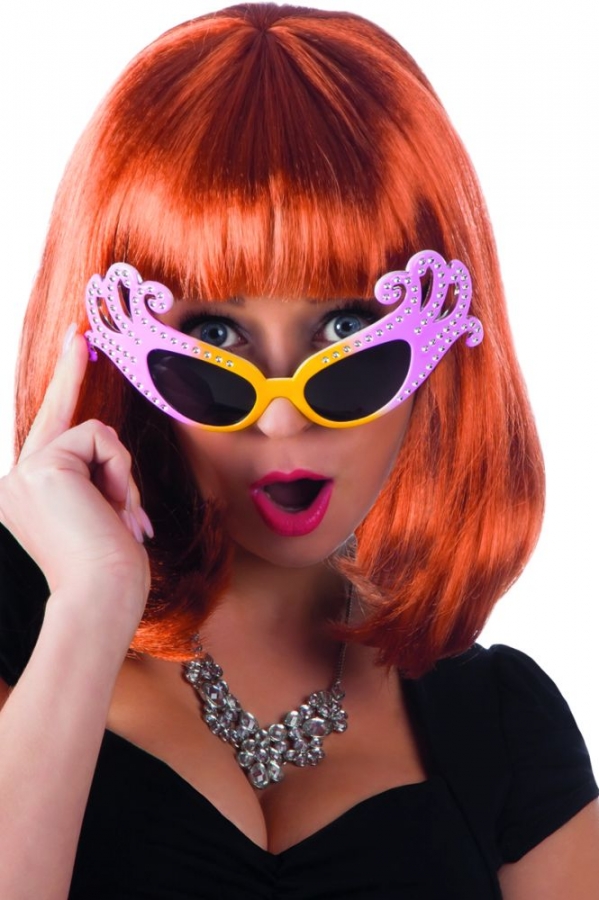 Partybrille in pink/gelb mit Strass. Party Highlight.
