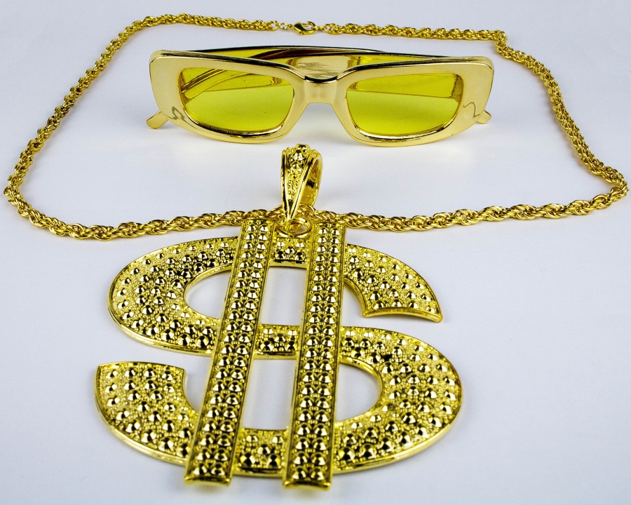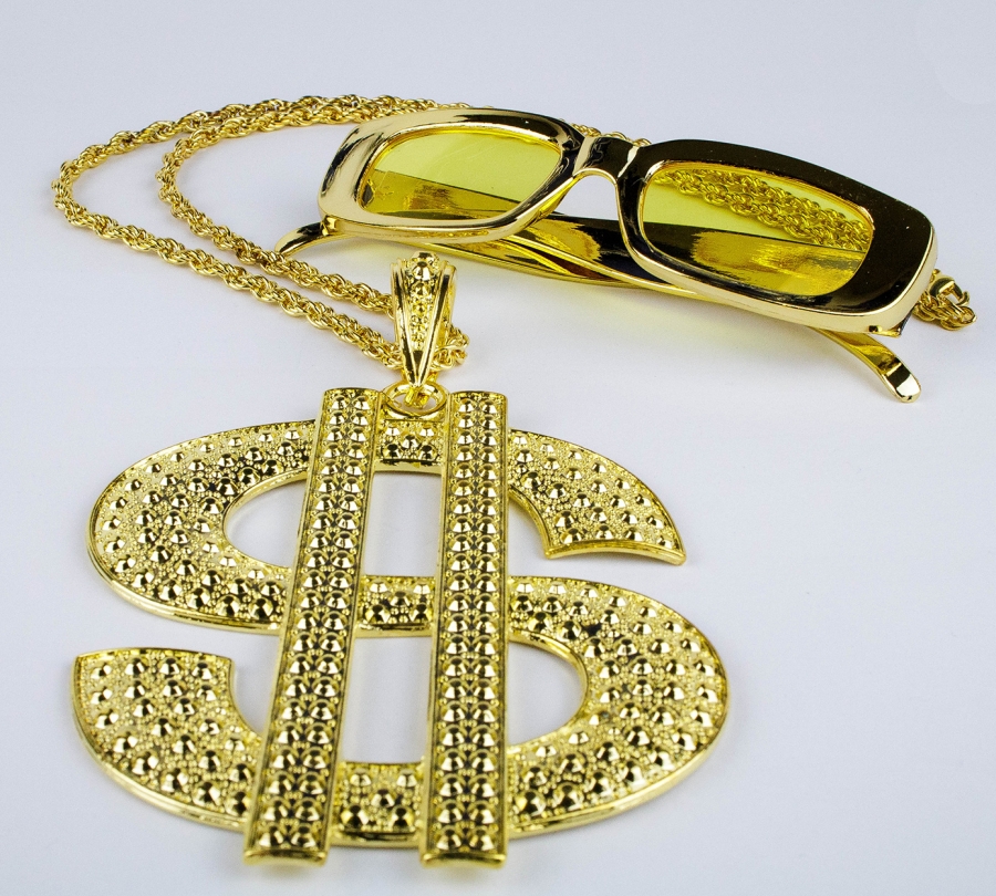 StartseiteKarnevalZubehörProll Lude Macho Proleth Hip Hop Rapper Set - Dollar Zeichen Kette und Brille
