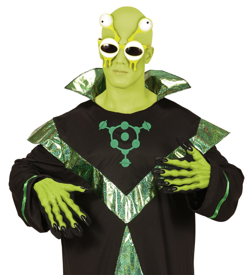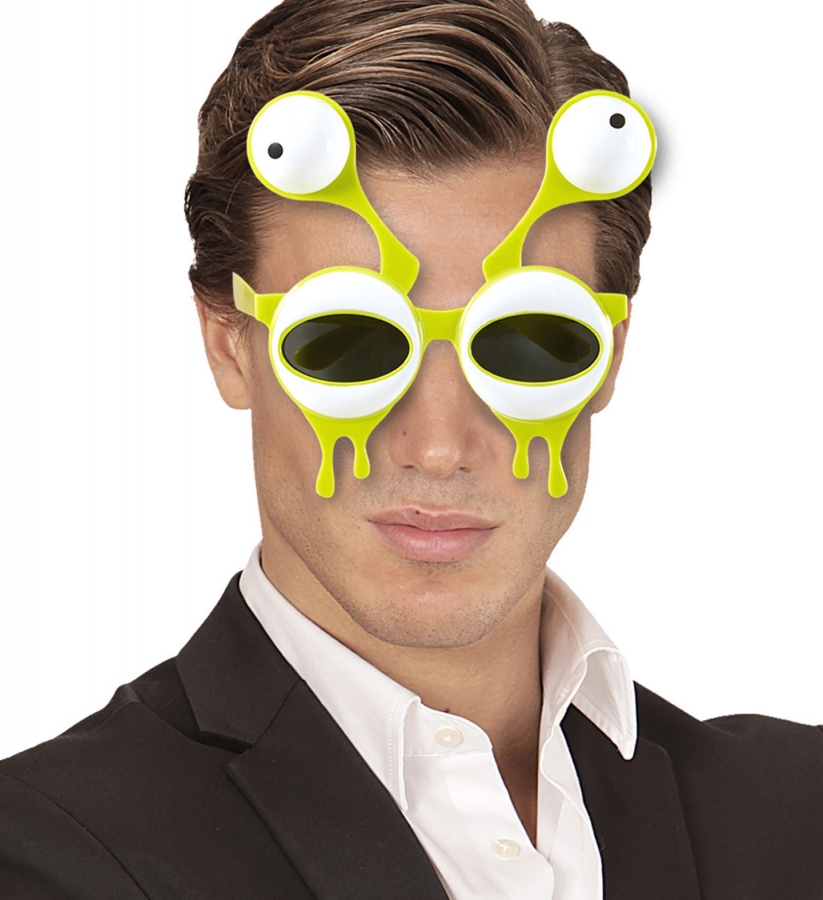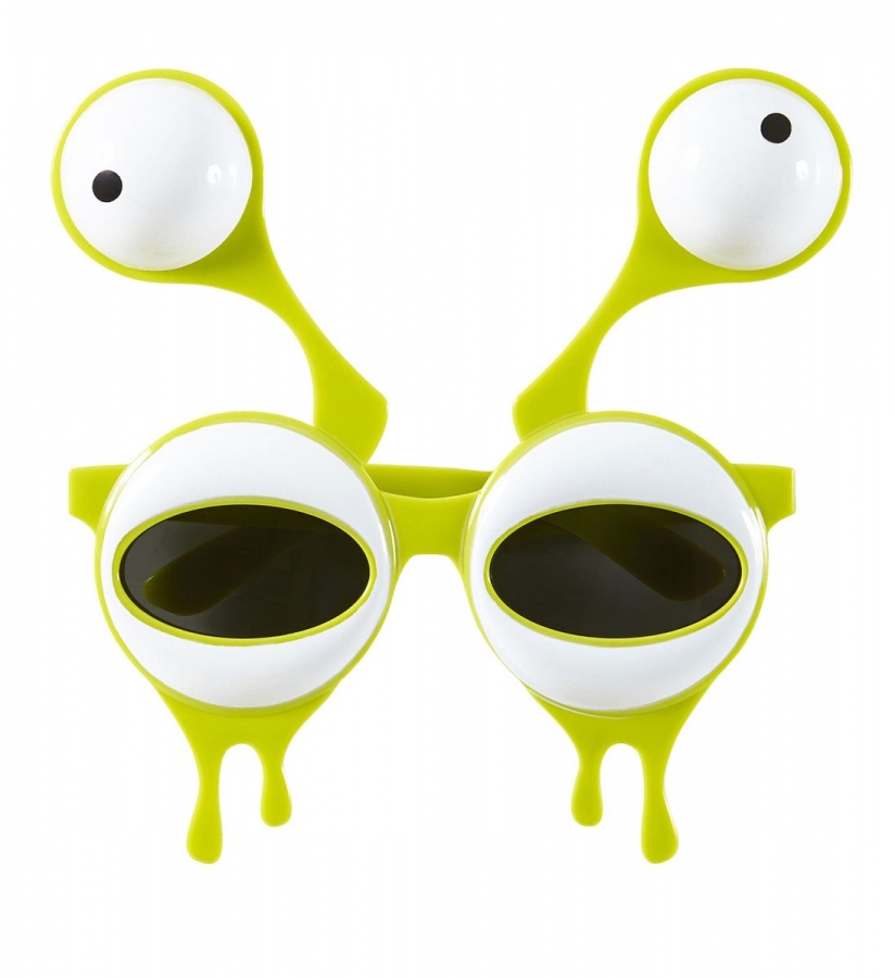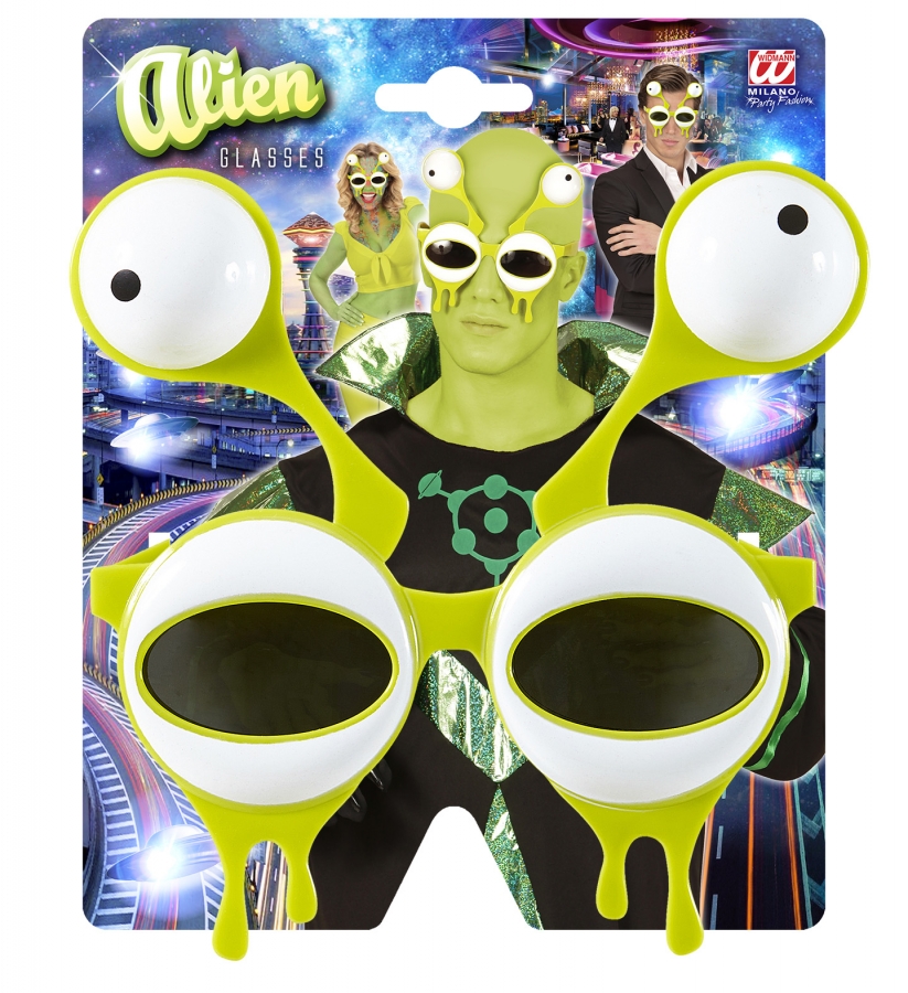 Spukige Spaßbrille zum Thema Weltall. Große grüne Glubschaugen machen diese Brille aus. Egal ob als Alien oder Außerirdischer. Auffallen ist Ihnen garantiert. Brille ist aus Kunststoff in Einheitsgröße hergestellt.