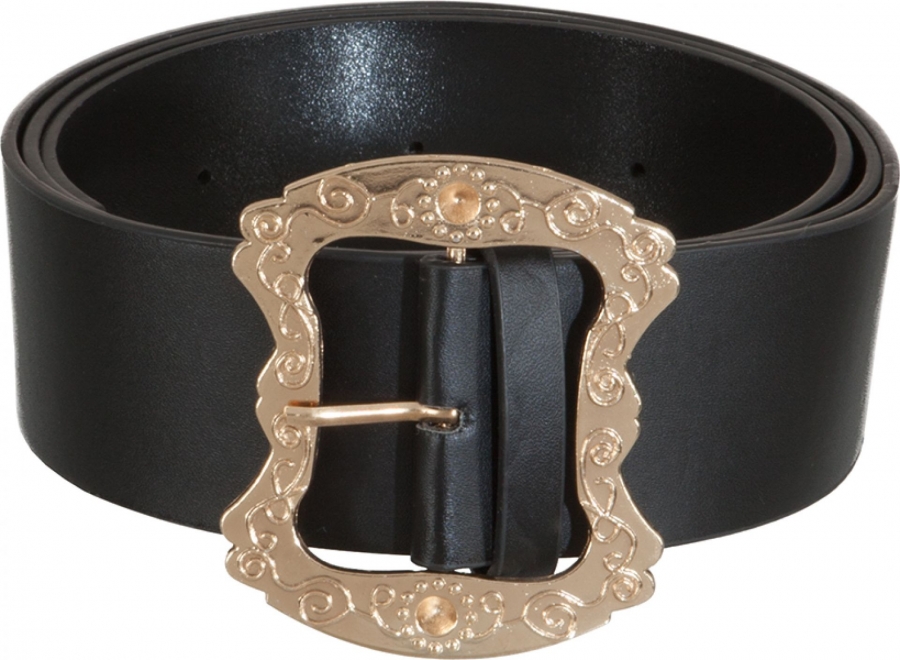 Schwarzer Gürtel mit großer, verzierter Schnalle