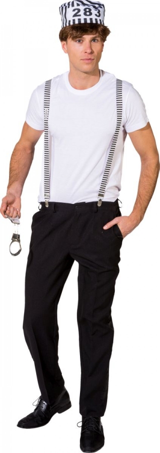 Sträfling Gefangener Knacki Set Kappe, Hosenträger und Handschellen