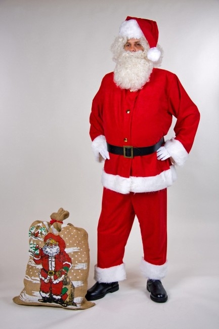 Nikolaus / Weihnachtsmann Anzug aus Waschsamt mit weißem Plüschbesatz. Jacke Hose, Mütze und Gürtel (ohne weiteres Zubehör)