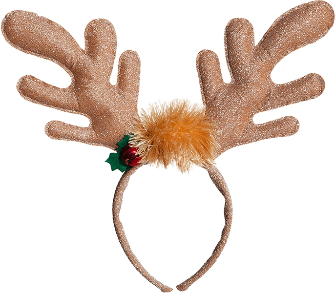 Haarreif Rentier mit Puschel und Glöcken in Glitter. Wahlweise in braun oder weiß lieferbar.