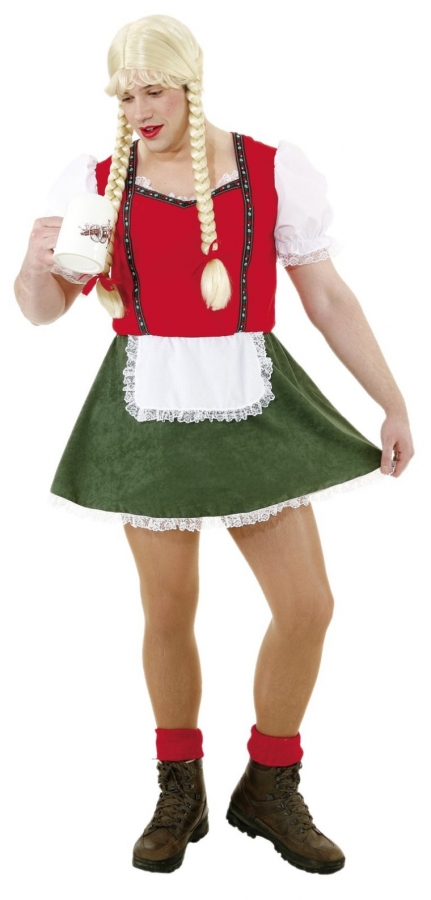 Lustiger Party-Spass der auch gern zum Junggesellenabschied genommen wird. Dirndl für den Mann ( ohne Perücke ). Lieferbar in den Größen: 50/52, 54/56 oder 58/60. Größenwunsch bitte angeben.