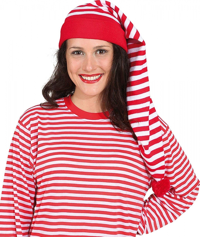 Tolles Partnerkostüm. Wahlweise in blau oder rot. Ringelshirt mit Zipfelmütze, quer gestreift. Unisex Material: 100% Polyester